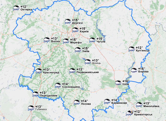 Прогноз погоди у Харківській області. Скриншот: sinoptik.ua