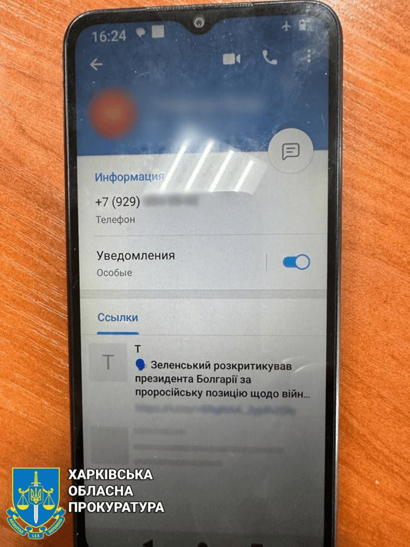 Телефон обвинувачуваного, де той переписувався з представниками РФ. Фото: Харківська обласна прокуратура / Telegram