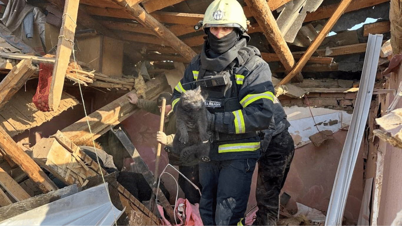 Разбор завалов. Фото: ГСЧС Харьковской областиРазбор завалов в Золочеве. Фото: ГСЧС Харьковской областиСпасенный кот. Фото: ГСЧС Харьковской области