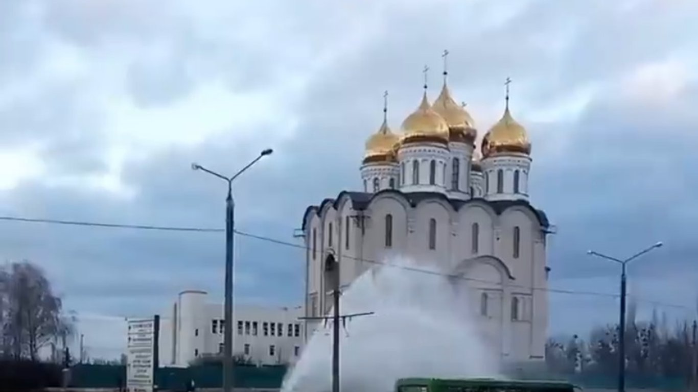 В Харькове на Салтовском шоссе произошло ЧП. Из лопнувшей трубы водопровода бьет двухметровый фонтан воды. Из-за аварии остановилось движение трамваев.