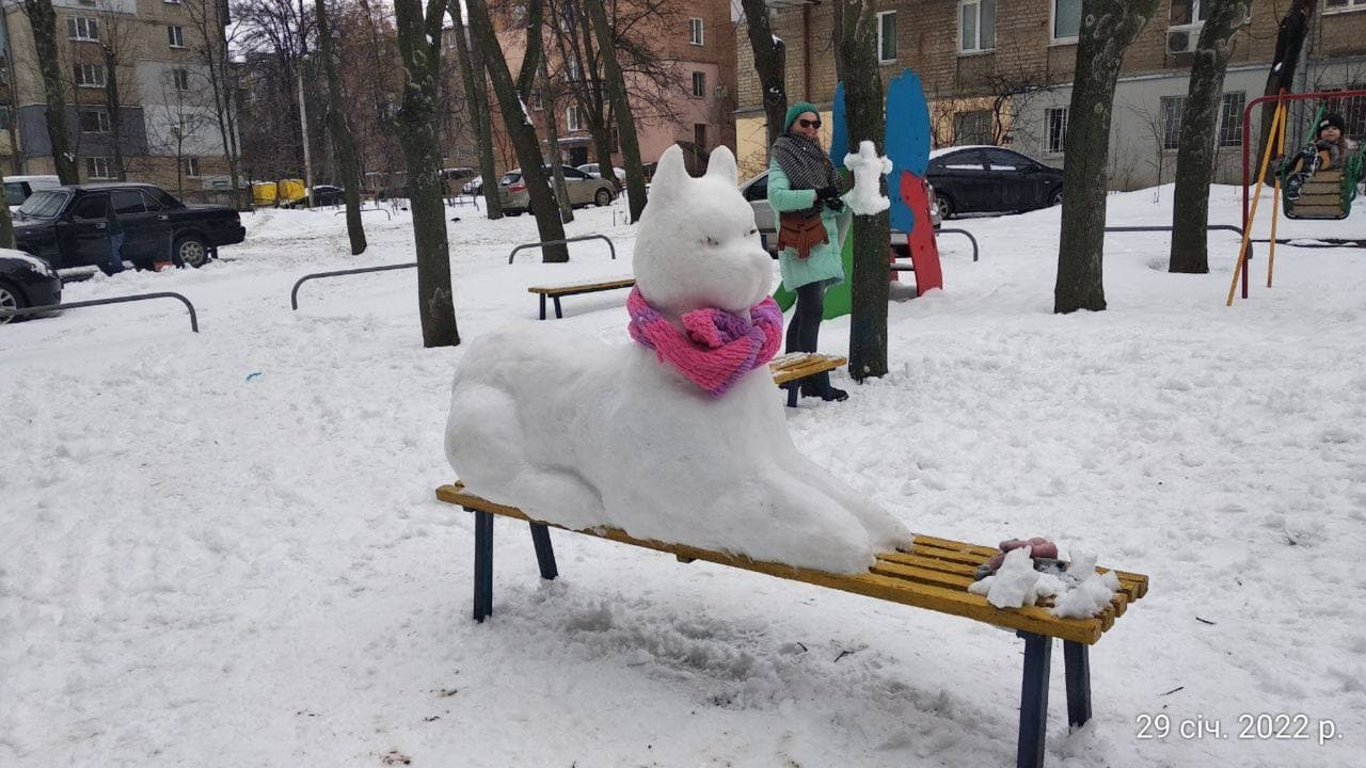 На выходные харьковчане во дворах домов состязались в оригинальности вылепленных снеговиков. В различных районах города можно было увидеть необычные по своей форме скульптуры из снега.