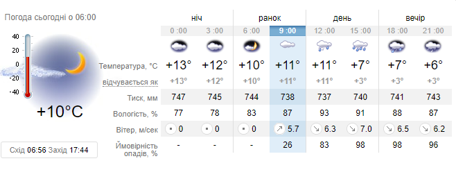 В самом Харькове ночью погода будет более спокойная, без существенных осадков, но днем следует подготовиться к дождю. Прогнозируется, что ночная температура будет составлять 9-11 °C, тогда как днем термометры покажут 11-13 °C.