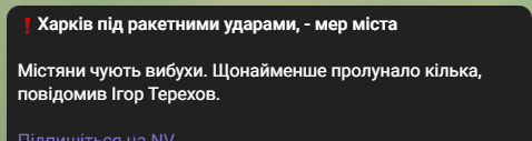 Мэр Харькова Игорь Терехов также подтвердил, что войска РФ нанесли ракетный удар по городу.