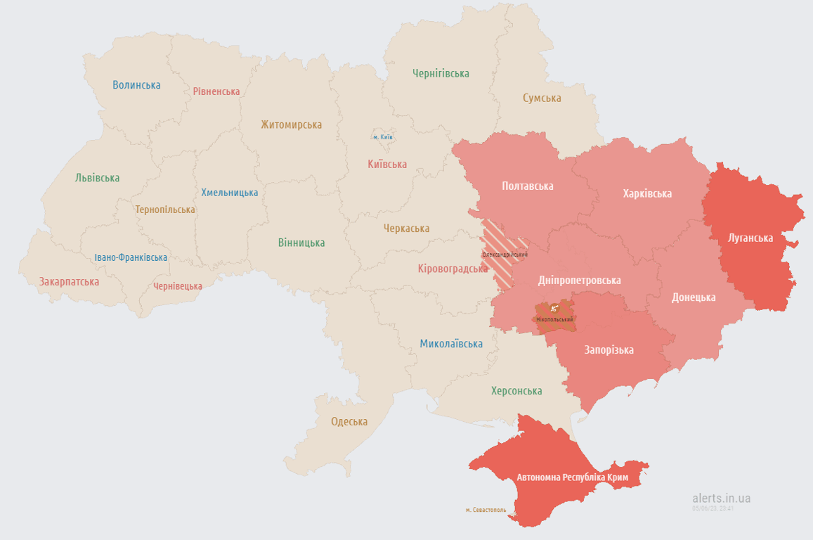 Карта воздушных тревог по Украине. Фото: Скриншот
