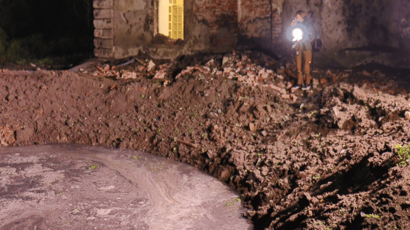 Воронка в месте попадания российской ракеты. Фото: Полиция Харьковской области