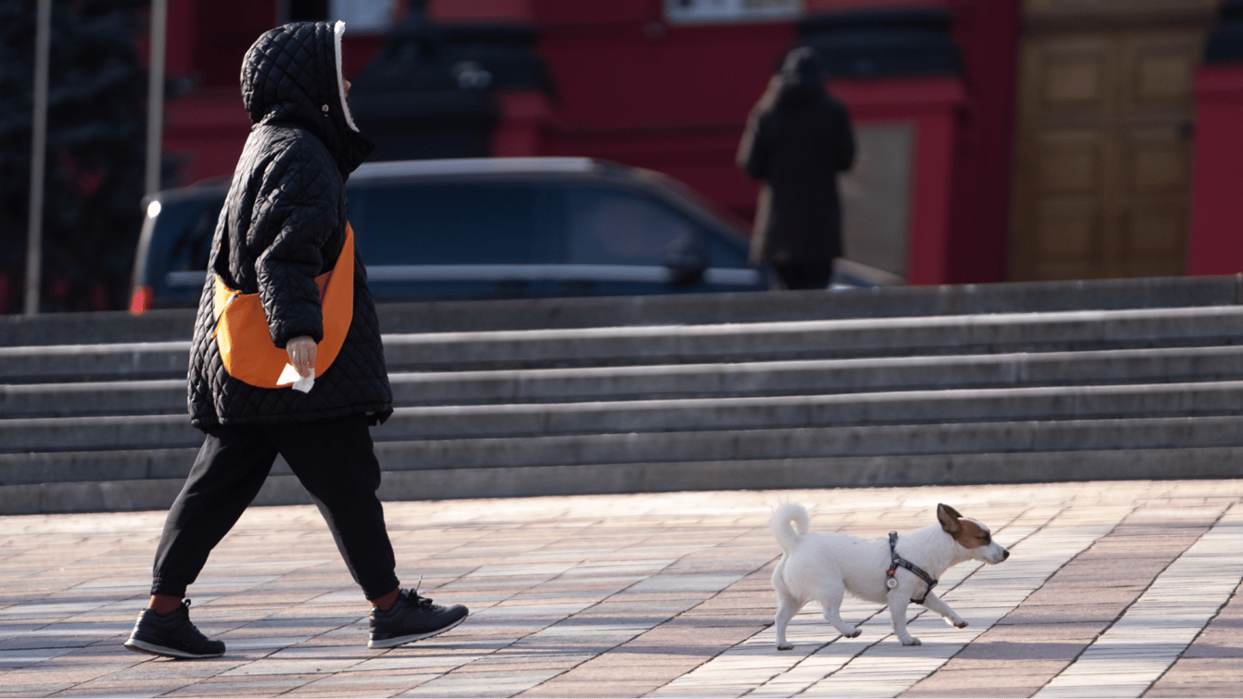 Женщина гуляет с собакой в солнечную погоду. Фото: Новини.LIVE