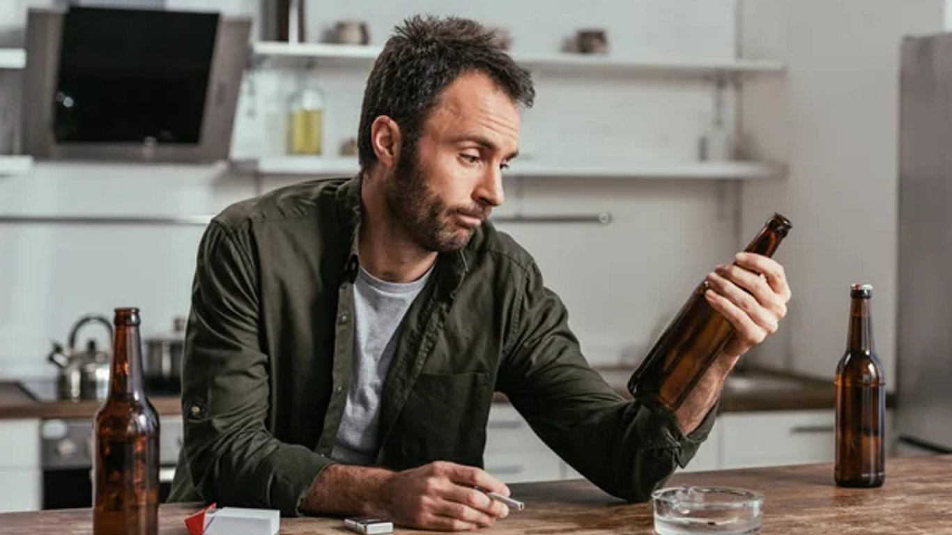 Чоловік із пляшками алкоголю. Фото ілюстративне: depositphotos.com