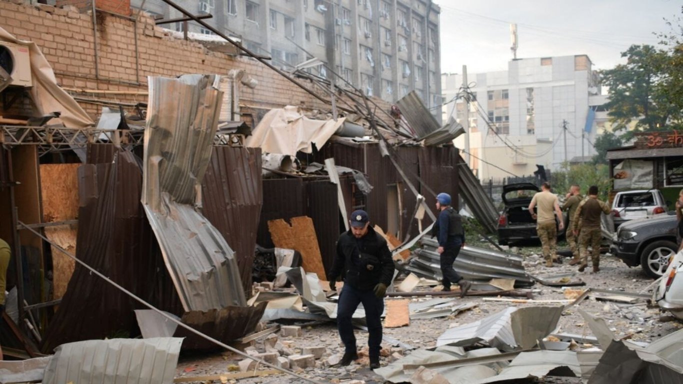 Поліцейський працює на місці влучання ворожої ракети. Ілюстраційне фото: Національна поліція України
