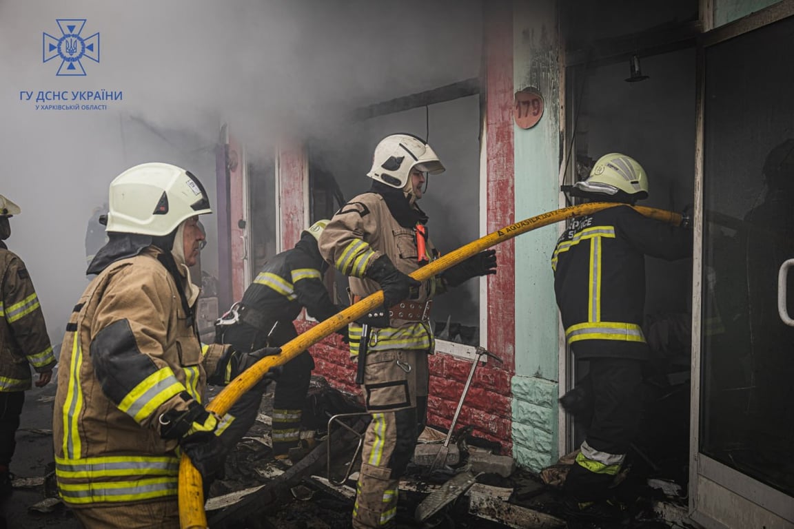 Ліквідація пожежі на ринку в Харкові. Фото: ДСНСДопис ДСНС. Фото: скриншот